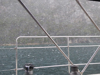 the rain is relentless, the waves are jostling us, but it´s not dangerous